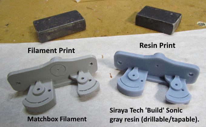 Above on the right is the resin print. The bracket in this case prints as one piece and....