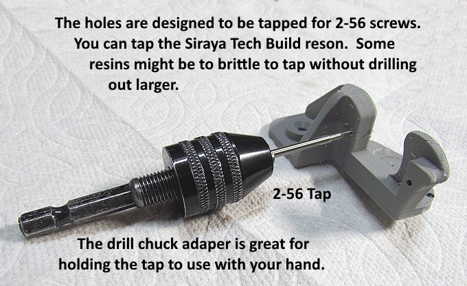 If you use a 2-56 tap (above) you should be able to tap the filament and resin prints with out pre-drilling them.