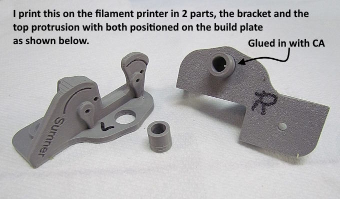 Above is the filament version of the bracket. Put the bracket and top protrusion on the printer's build plate as shown at the left. Then ....