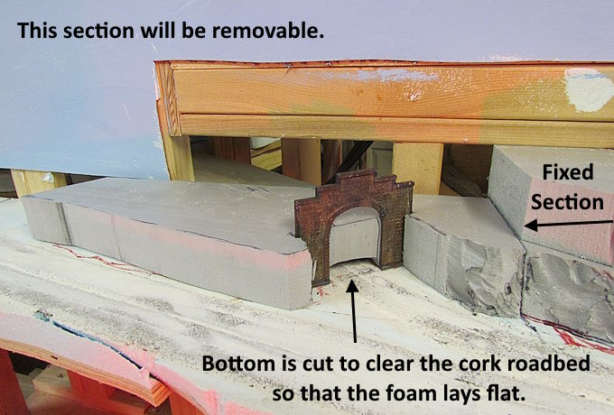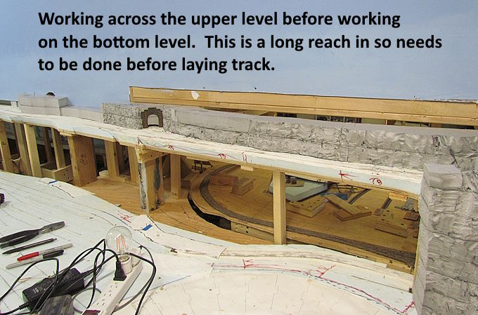 The area that is being worked on here and on the three previous pages is the scenery behind the main yard area and the engine maintenance scene.