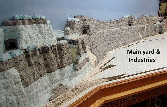 In this section above where the main yard will be I’m trying to make it look like the track is on a roadbed that was blasted into the side of the rock face resulting in the tracks very close to the edge of the rock face down to the yard.