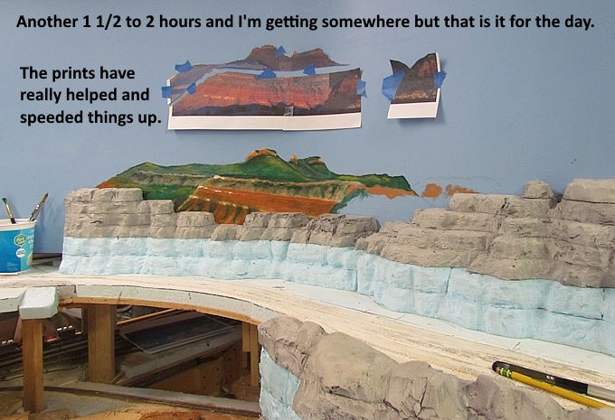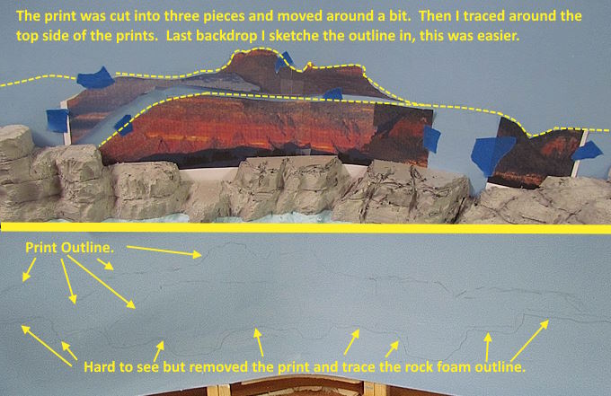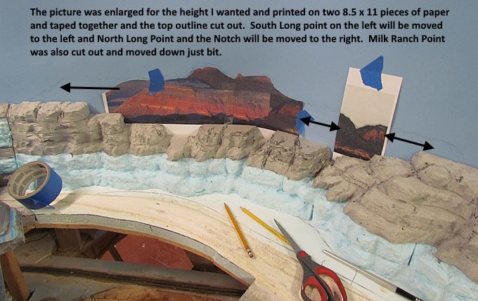 I ended up with a number of photos and used paint.net to crop them and position them closer together (above). I also printed the final image to about 6 inches high which was about how high I want them to be above the foam scenery on the layout.