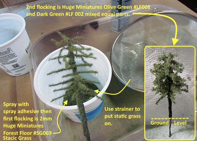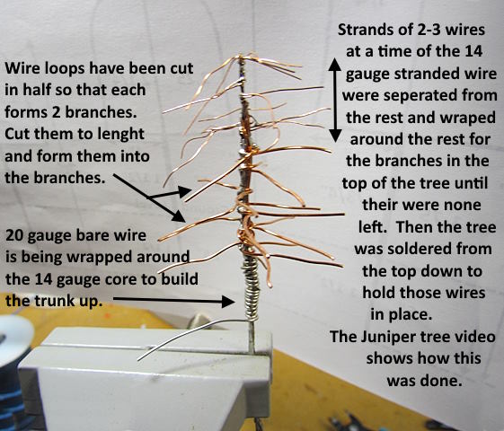 I tried a couple different techniques, for now at least, settled on what is shown in the images here. These are slower to make than the Junipers but not real bad time wise. Probably will end up at about a half hour per tree, start to finish.