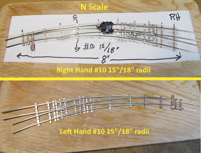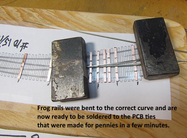 Three more curved turnouts were needed for the sawmill complex tracks & main. Below is mainly more turnout build techniques that I use. These have changed over the years and will probably continue to change. The more you build turnouts the more you find ways to improve on them.