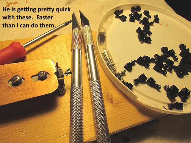He came back the next day and said he wanted to try. He sticks with things. Pretty soon he was turning couplers out and came back the next day also and had 20 pairs (40 couplers) finished after two short days of work.